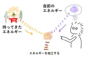 呼び出したエネルギーに自分のイメージを重ね合わせて加工したりすることもできます。