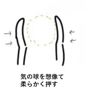 このイメージを維持したまま、両手のひらをそおっと押してやると、その気の球が弾力性を持って押し返してくるので、それを感じ取れたら、気の球が出来ていることになります。
