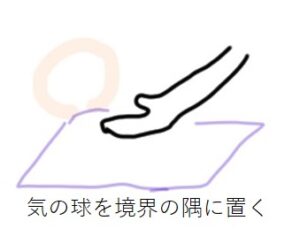 先程作った気の球を両手で抱えて置く場所まで持って行き、風船を置くような感じでそおっと置けば、気の球を置いたことになります。